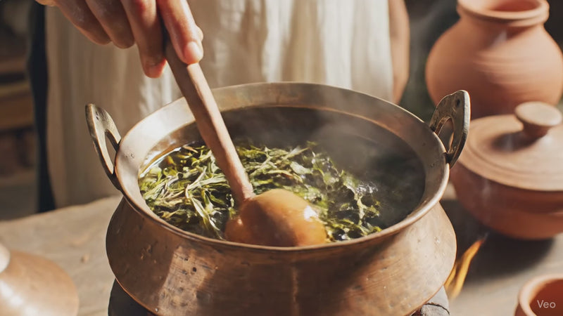 The traditional Ayurvedic Taila-Pak method slowly simmers herbs in oil for 6โ8 hours, allowing every active compound to fully dissolve into the oil. After steeping for 24โ48 hours, the infusion becomes rich in antioxidants, minerals, and bioactive nutrients. This process creates a high-potency herbal oil that penetrates deeper, nourishes roots, and supports stronger, healthier hair growth.